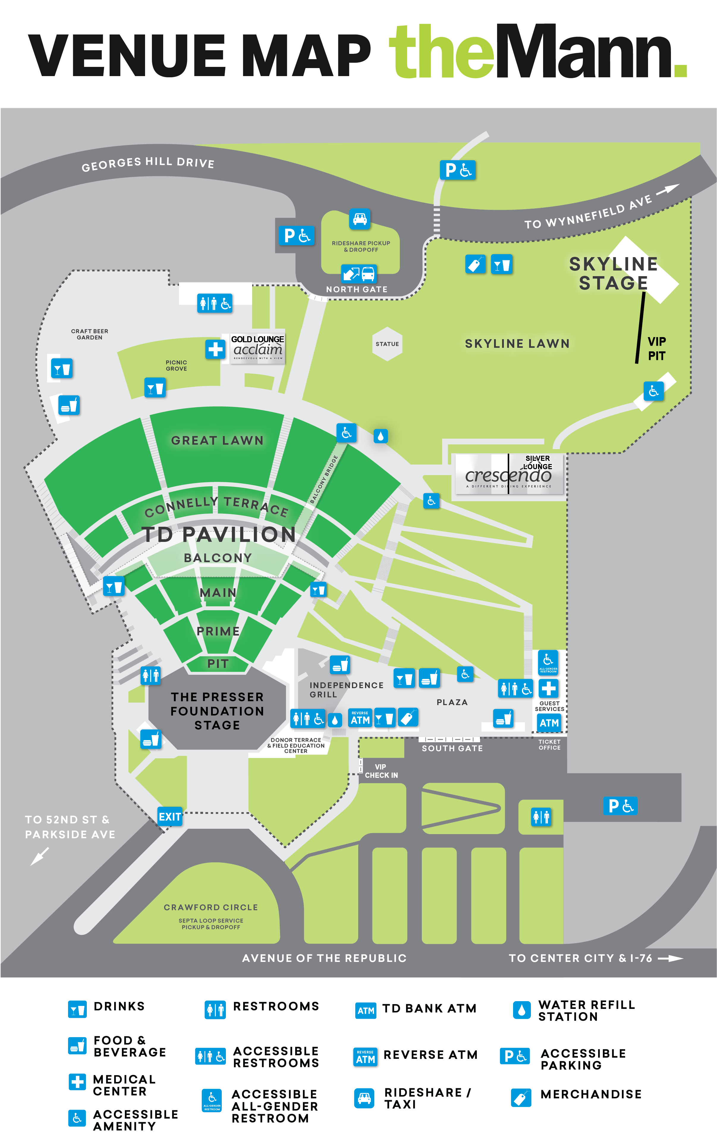Please note: The Skyline Stage is general admission standing room only. For the TD Pavilion, seating will be general admission until 6:30PM when assigned seating will be enforced based on the purchased ticket location. VIP Seating is reserved for the entire day.