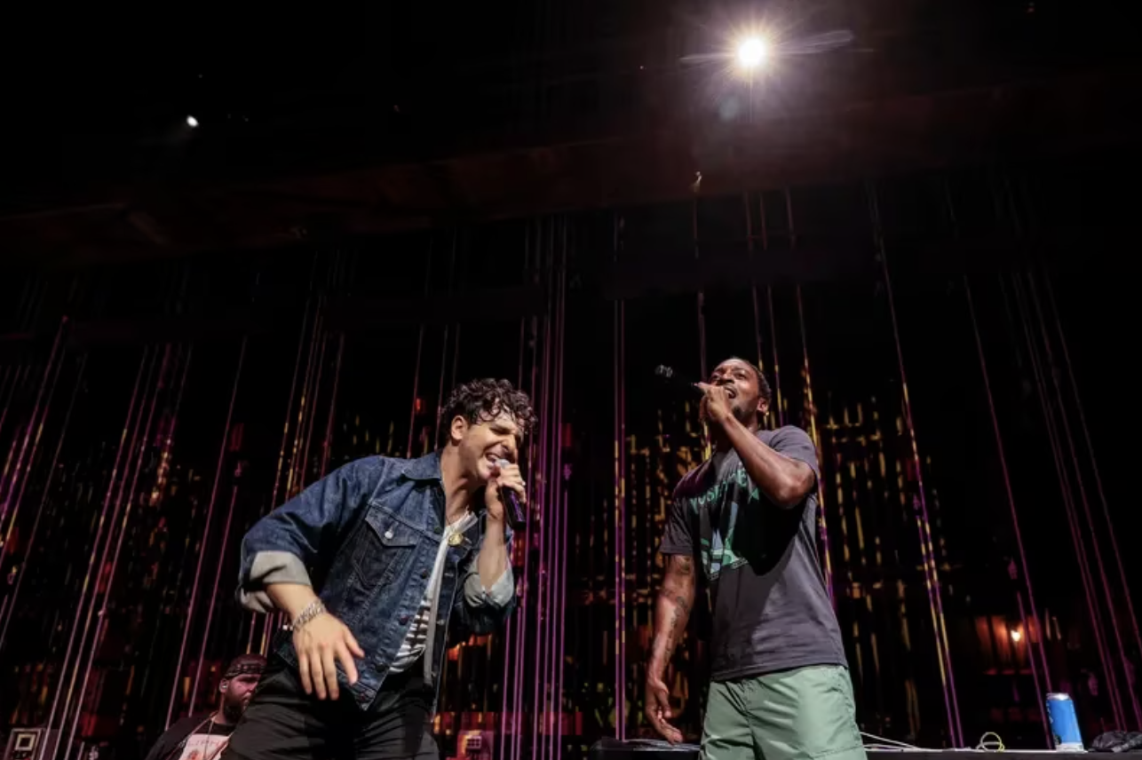 Philly rapper Chill Moody at right performing with rock and roller Low Cut Connie during a new series at the Mann called Downstage at the Mann. Thursday, June 29, 2023