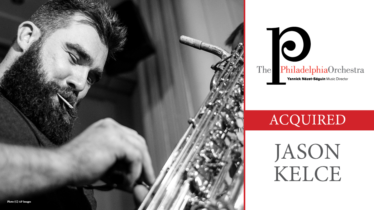 PHILADELPHIA (July 19, 2018) – The Philadelphia Orchestra has announced that Eagles center Jason Kelce will trade in his cleats for a saxophone reed to play the baritone sax during the Mann’s A Championship Season event on Tuesday, July 24.