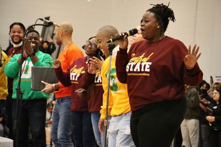 Members of the Jeremy Winston Chorale perform at Cristo Rey High School to promote the HBCU to be held at The Mann this spring.