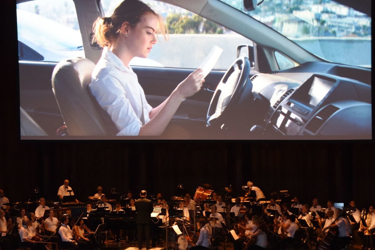 The Mann has made film-with-orchestra a major part of its artistic statement. Often it works. The Harry Potter tales grow only more subtle with live orchestra. Music and story here, however, sometimes worked at cross purposes. Sebastian has just put on a record when he and Mia (Stone) have their first fight. But the music we hear is actually being played by the ensemble on stage, and the problem, oddly, is that the musicians are good. So good that you want to listen, and you can’t, because there’s just too much competing for attention.