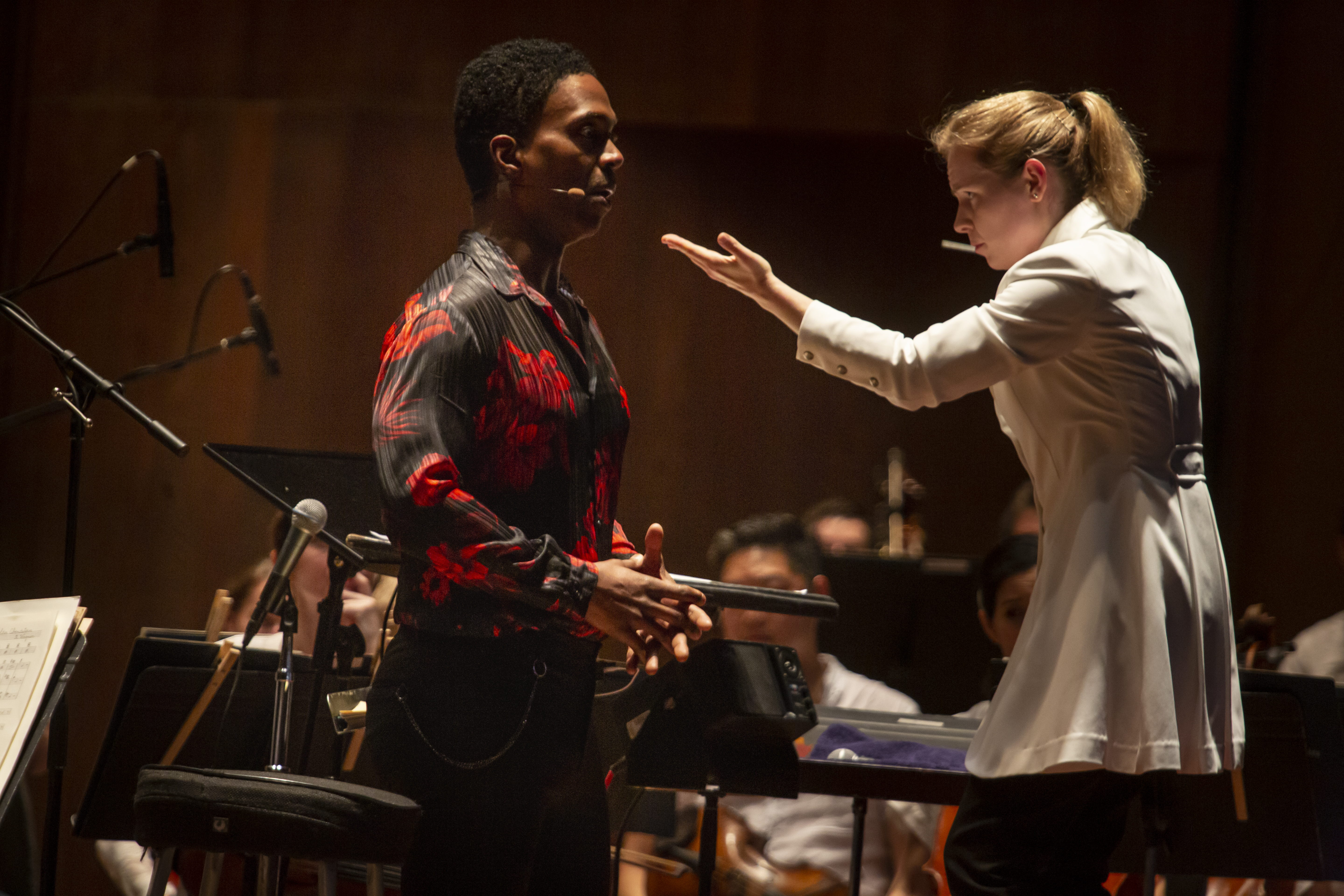 New Zealand conductor Gemma New leads the Philadelphia Orchestra in a space-themed program at the Mann Center on July 24, 2019. Baritone Nmon Ford sang "Moon River" and a Wagner selection.