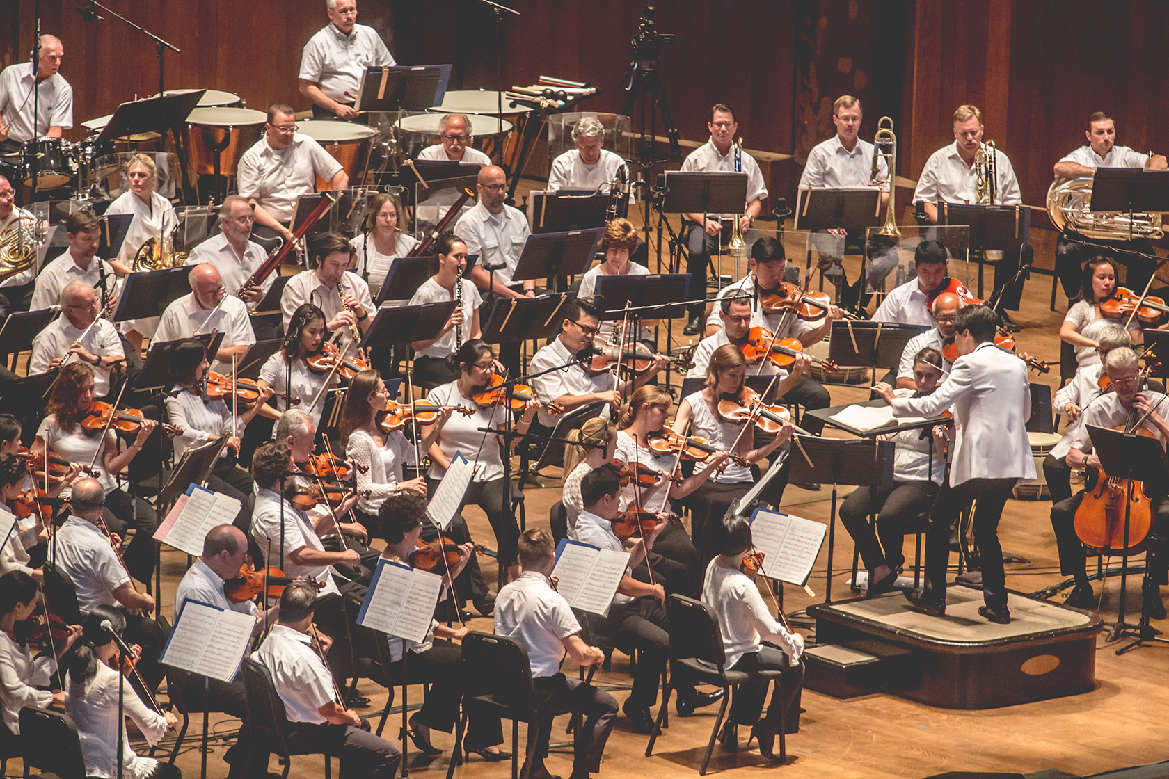 Bernstein was threaded through the rest of the program. The orchestra and two excellent singers, baritone Joseph Lattanzi and soprano Alexandra Schoeny, performed excerpts from the Mass, On the Town, and Peter Pan. Schoeny was especially good at drawing meaning from “Glitter and Be Gay” from Candide, toying with the ambiguity of its slippery harmonic changes and the way it sounds like something out of Richard Strauss one moment and Johann Strauss the next.