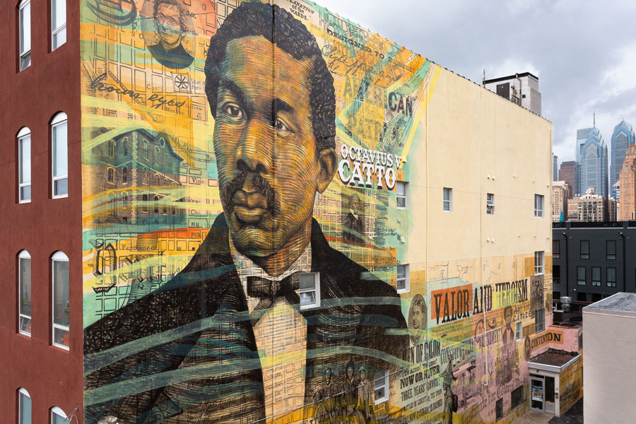 Celebrate Black History month with an African American Iconic Murals Trolley Tour. | Remembering a Forgotten Hero by Keir Johnston and Willis “Nomo” Humphrey for Mural Arts Philadelphia.